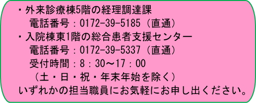 URL) http://www.med.hirosaki-u.ac.jp/hospital/outline/funding/funding.html