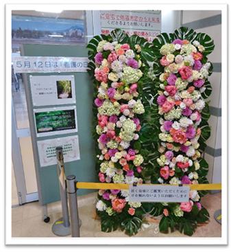 テーマ「千紫万紅」 多種多様な色とりどりの花が咲き誇っている様子をイメージしています。 外来ホール内に色鮮やかな16種類のお花が展示されました。 |