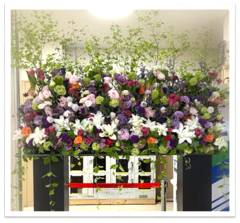 お花の種類 ・グロリオサ ・胡蝶蘭 ・シンビジューム ・スプレー菊 ・アンスリラム ・手毬草 ・クレマチス ・モンステラ ・ドラセナ ・夕霧草 ・リューカデンドロン ・タラスピオファルム |